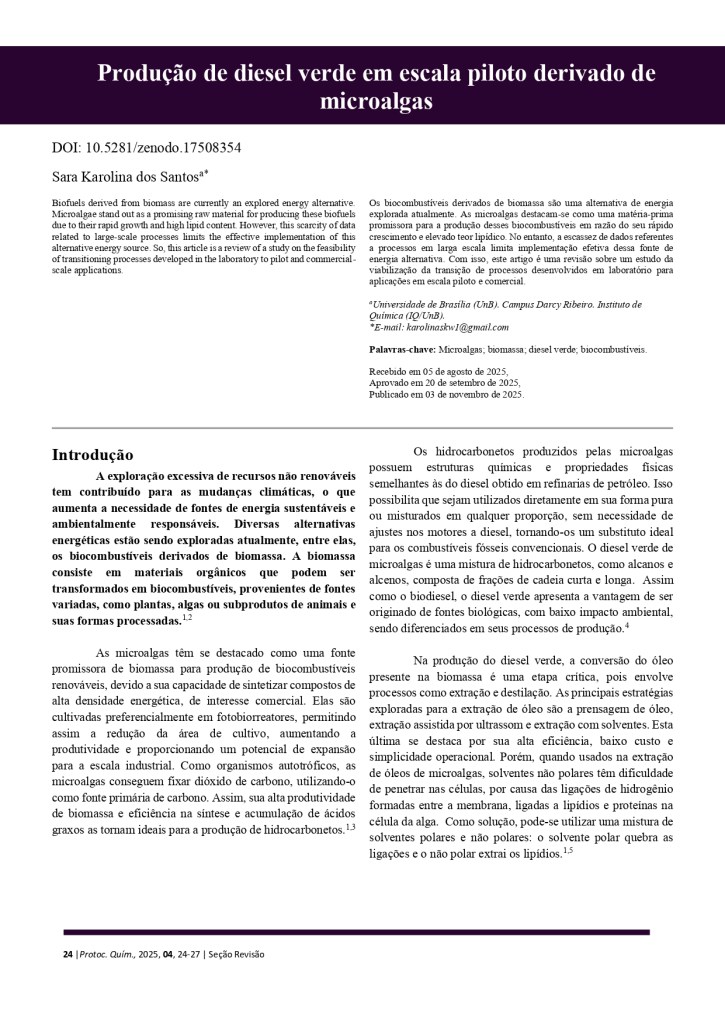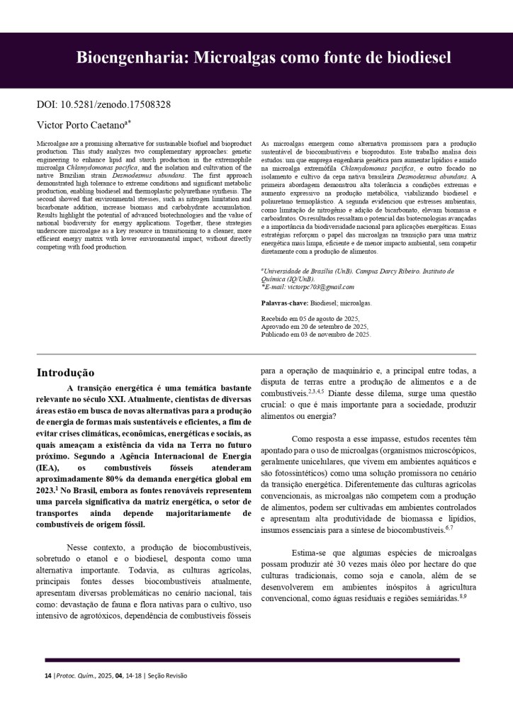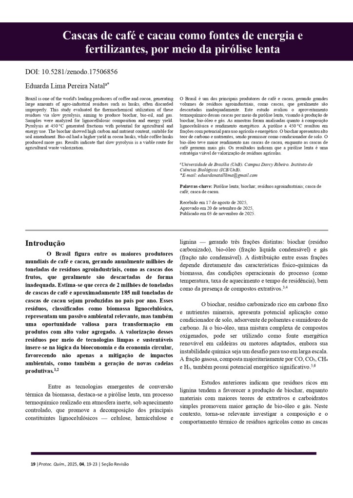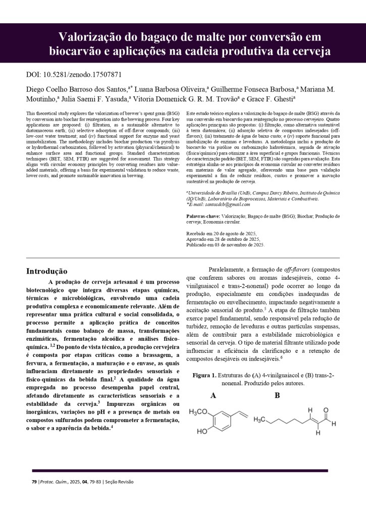Esta edição da Revista Protocolos em Química é composta por trabalhos resultantes de pesquisas realizadas na integra por estudantes da graduação do Instituto de Química da Universidade de Brasília. Para tanto, os trabalhos foram avaliados pelo comitê científico e com isso, este periódico atende aos princípios da comunicação científica, no processo de disseminação da informação.