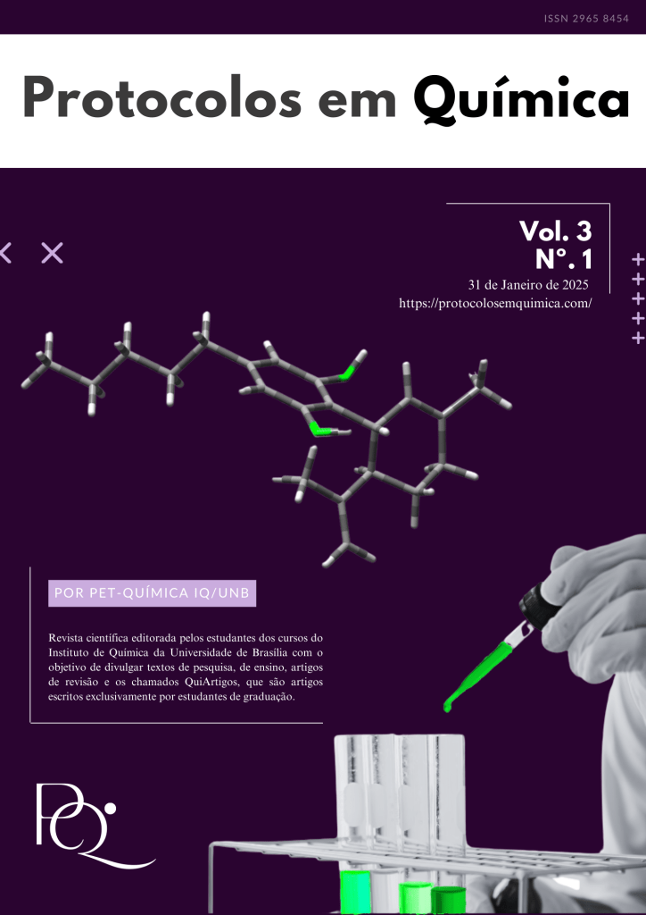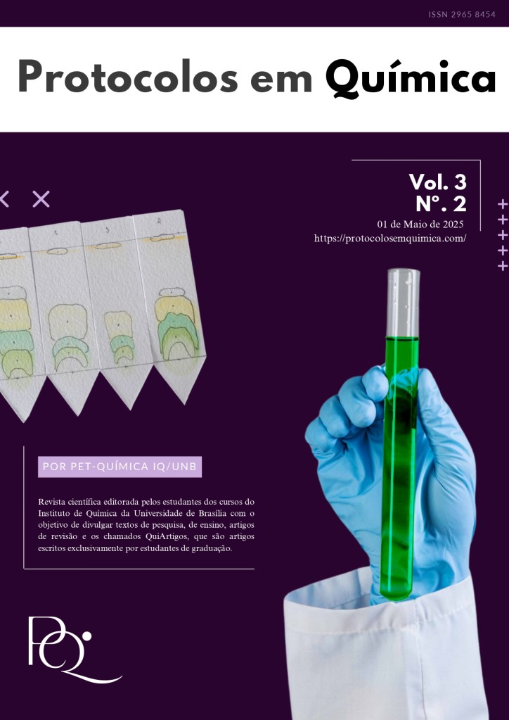 Este número da Revista Protocolos em Química é composto por trabalhos resultantes de pesquisas realizadas na integra por estudante da graduação do grupo PET-Química. Para tanto, os trabalhos foram avaliados pelo comitê científico e com isso, este periódico atende aos princípios da comunicação científica, no processo de disseminação da informação.